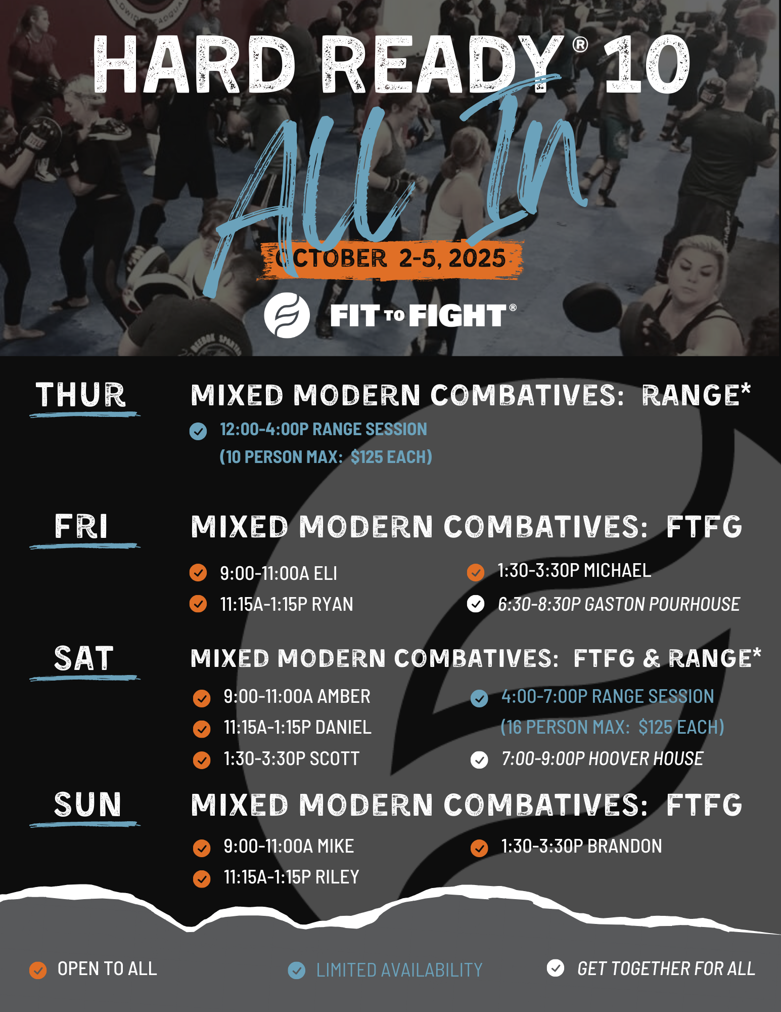 (REQUIRED for anyone who will be shooting OR hanging out at the range during either session).